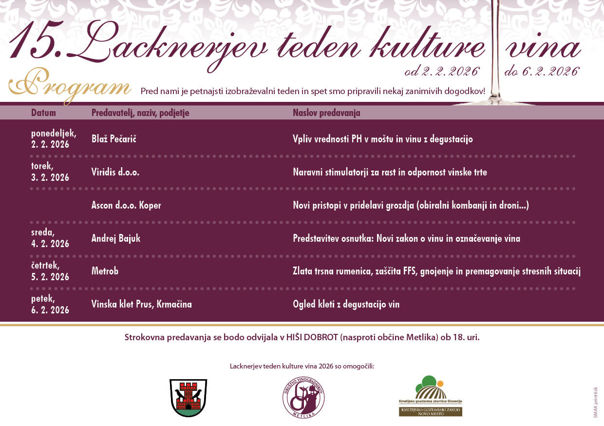 22.1.2026 - Vabilo na 15. Lacknerjev teden kulture vina, od 2.2.2026 do 6.2.2026